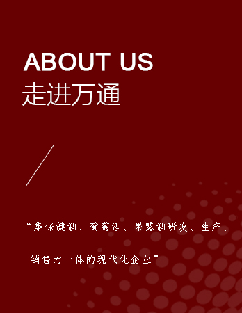 通化萬通葡萄酒股份有限公司是吉林萬通集團所屬的全資控股子公司,是集葡萄酒、保健酒、果露酒、配制酒、飲料、白酒等六大品類研發、生產、銷售為一體的現代化規模企業。公司坐落于素有“中國葡萄酒之鄉”“葡萄酒城”美譽的吉林省通化市二道江區。公司2000年建廠,2011年11月1日被萬通集團重組收購,企業發展步入新紀元,興建了具有法國特色的…...